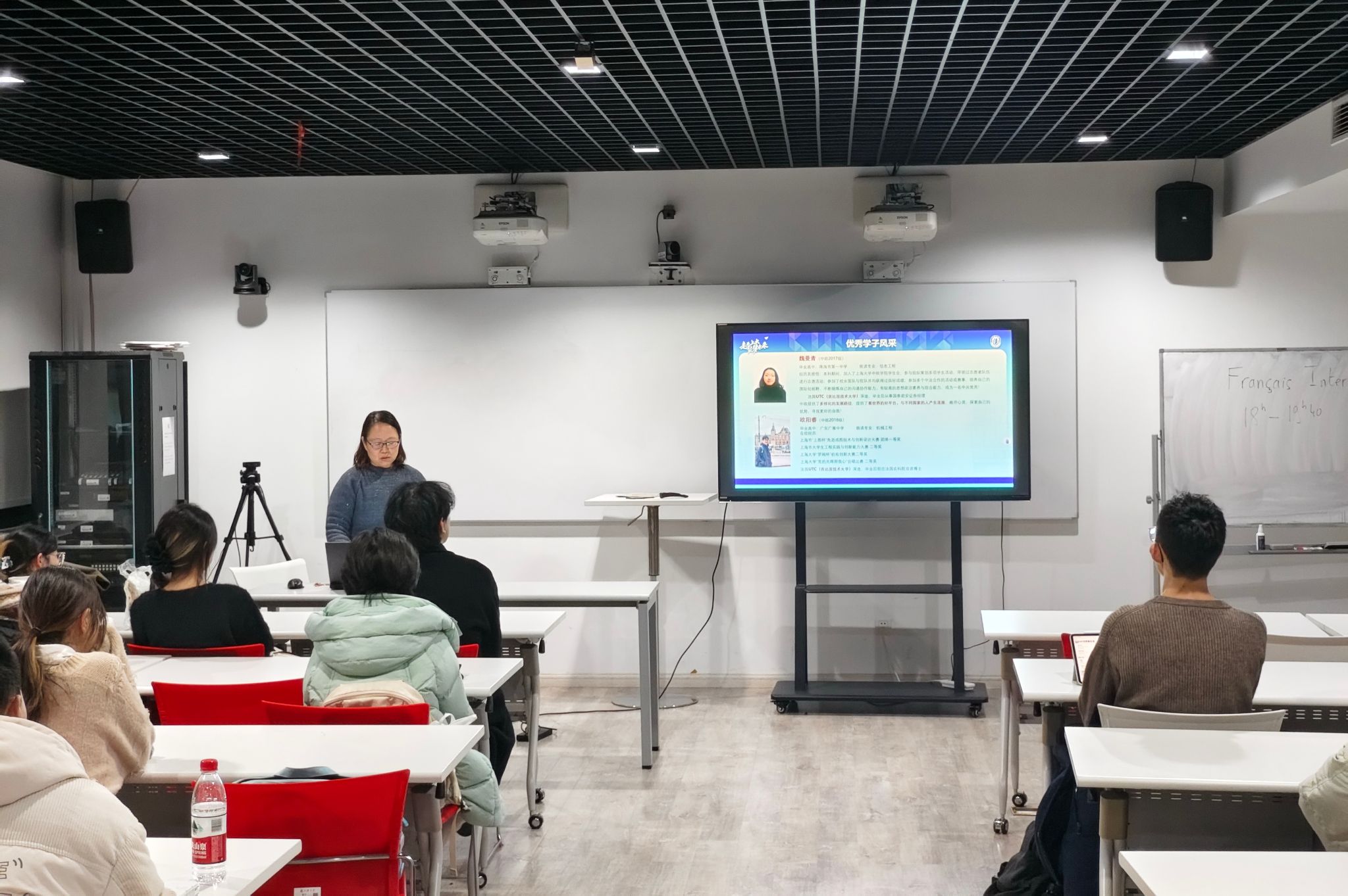 在经验分享环节,中欧工程技术学院的熊文慧与计算机工程与科学学院的杨旭晨两位同学,结合往年宣讲经历,为在场同学提供了实用建议与宣传灵感。