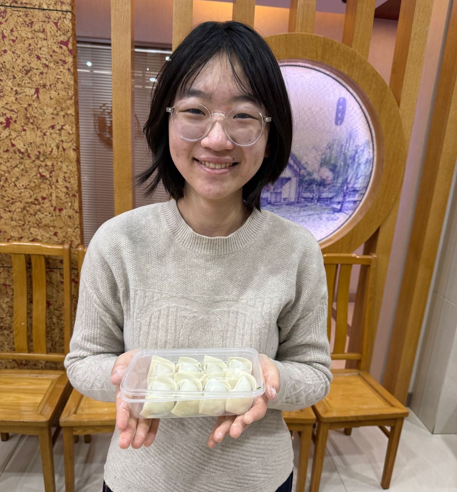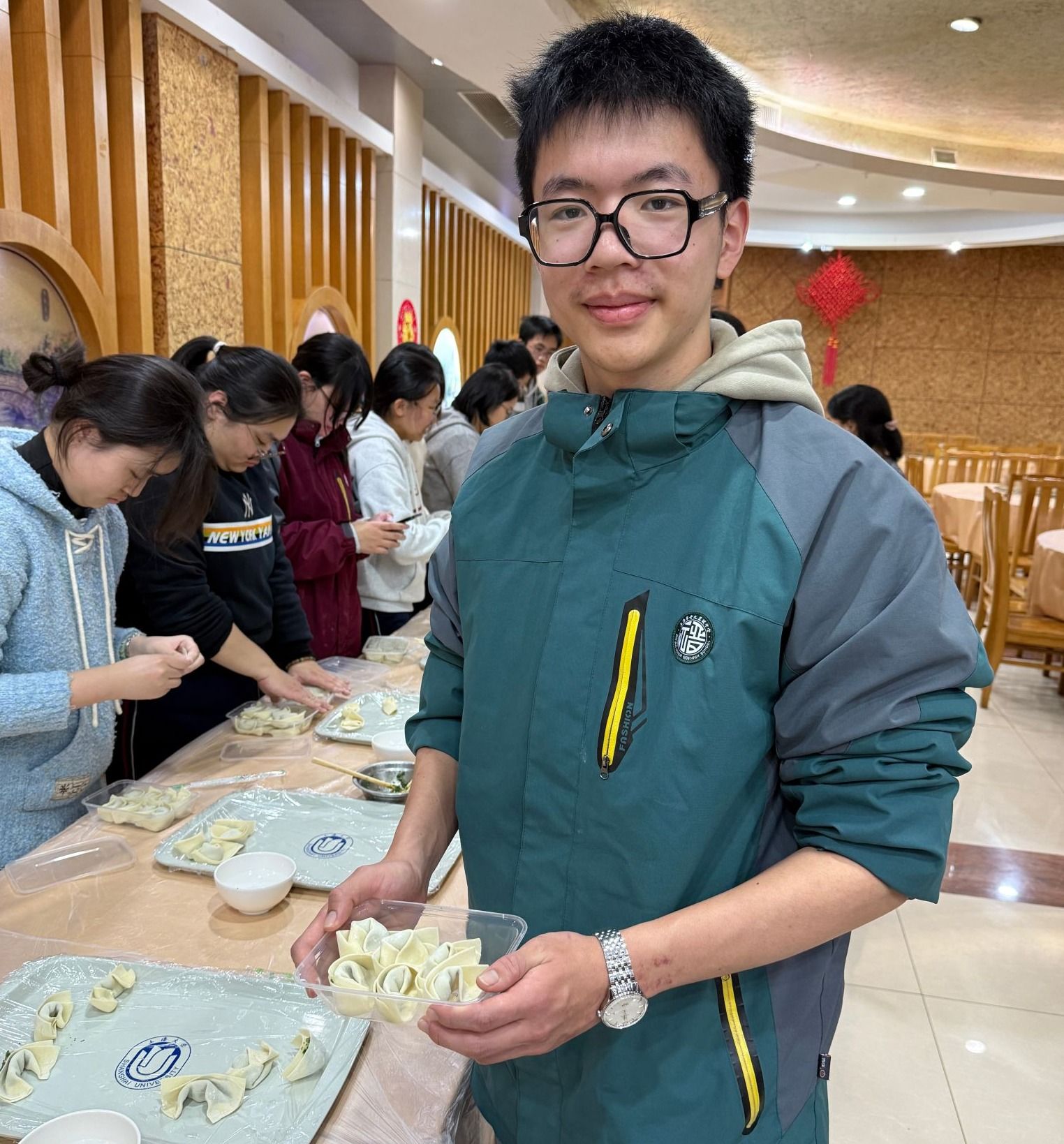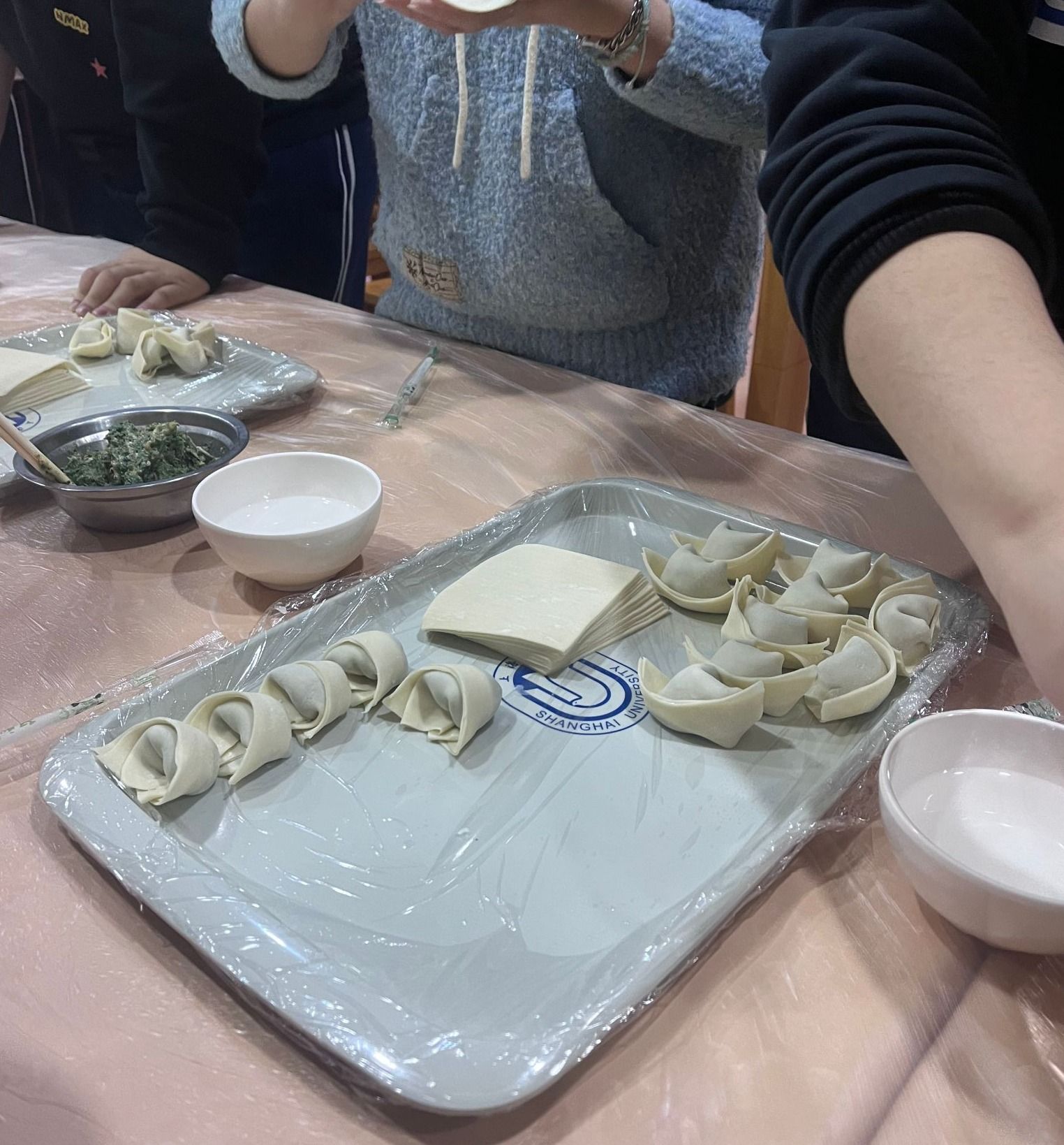 食堂的师傅们为同学们准备了“巧手包心意”馄饨制作工作坊。揉面、擀皮、包馅……场面热闹温馨,劳动与协作的快乐洋溢在每个人脸上。