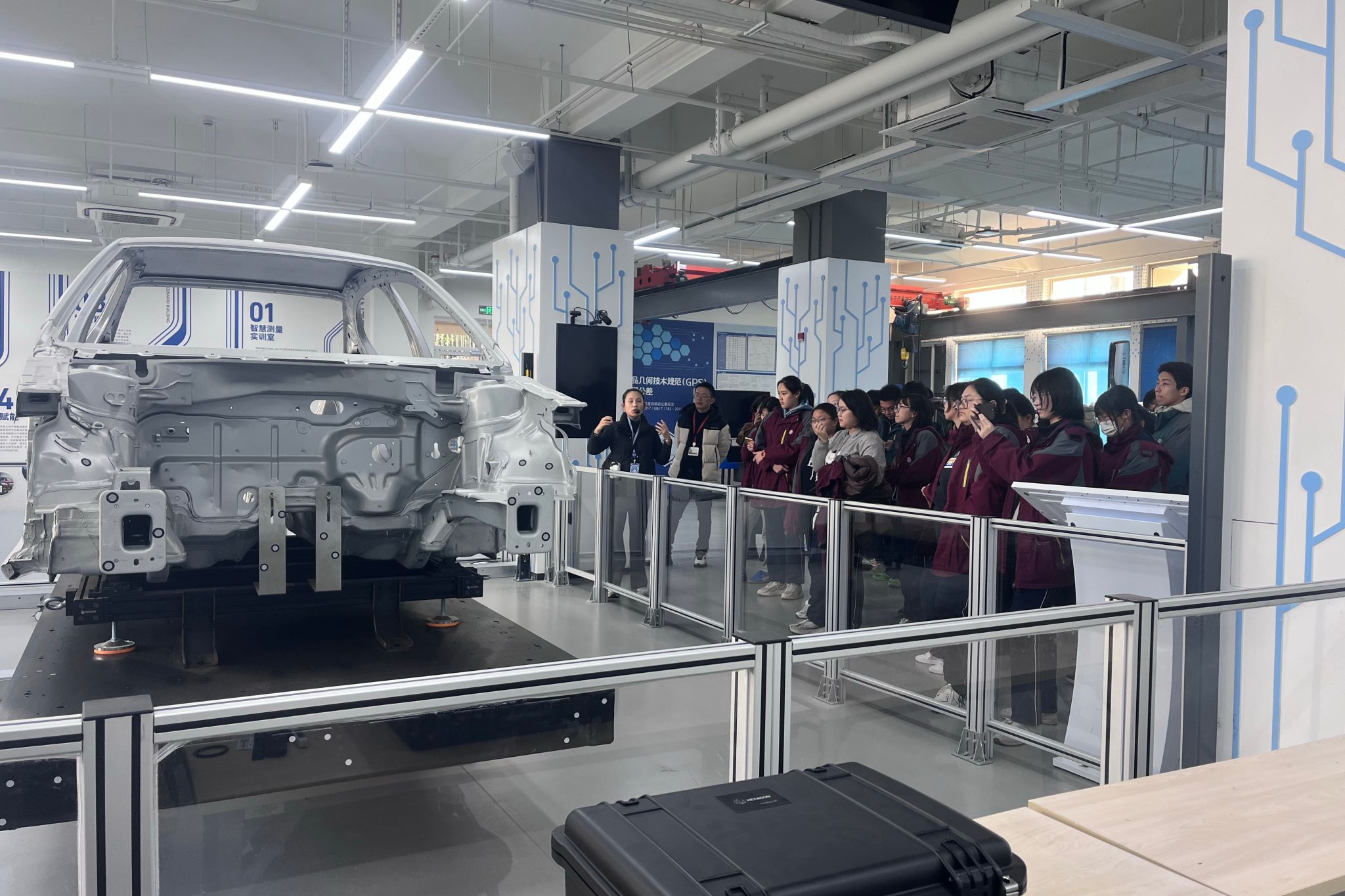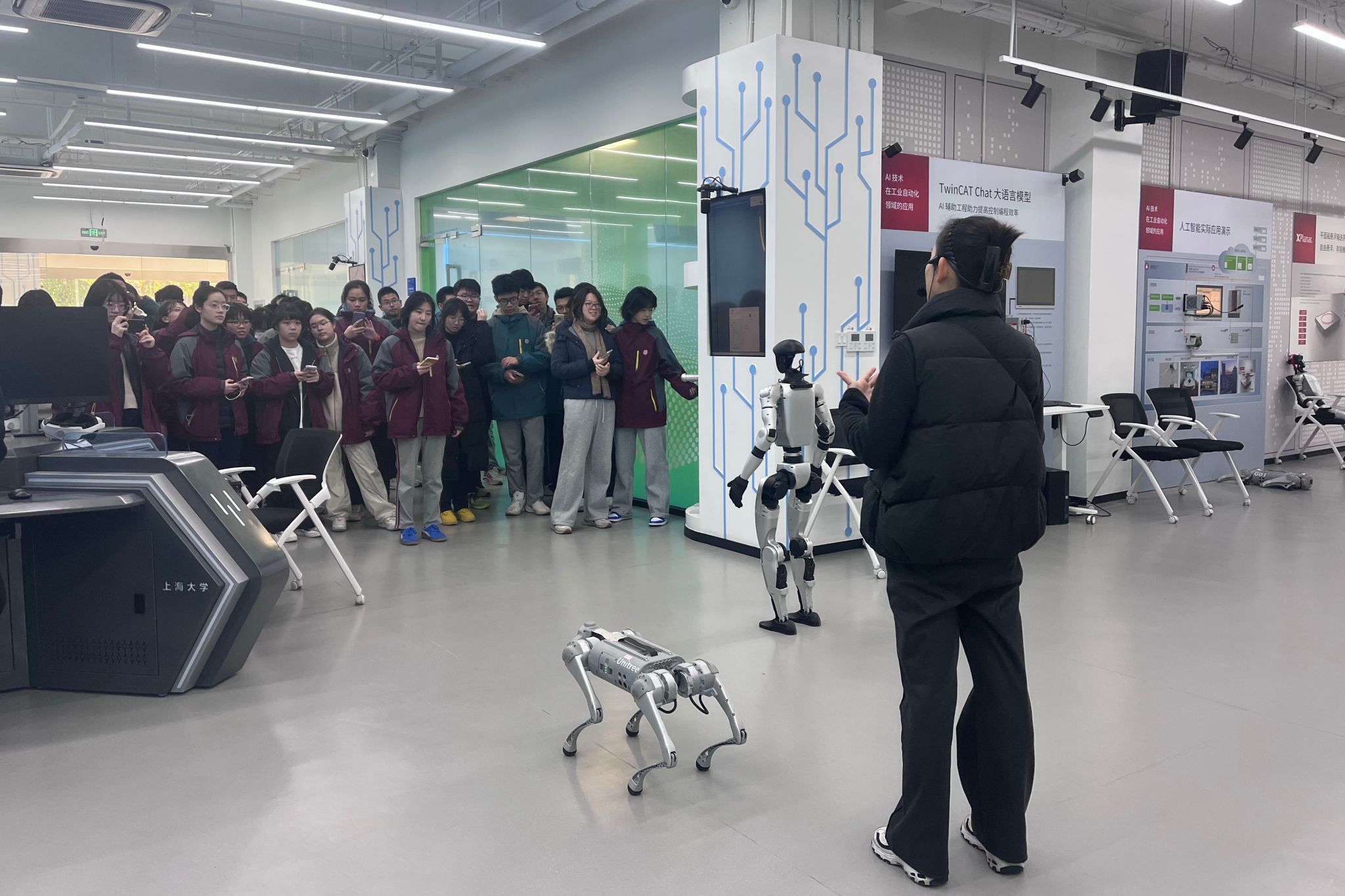 下午的活动更为生动有趣。在工程训练中心,同学们参观了工程文化园现代工业文化展,并观看了机器人与机器狗的现场演示,前沿科技的魅力引来阵阵赞叹。