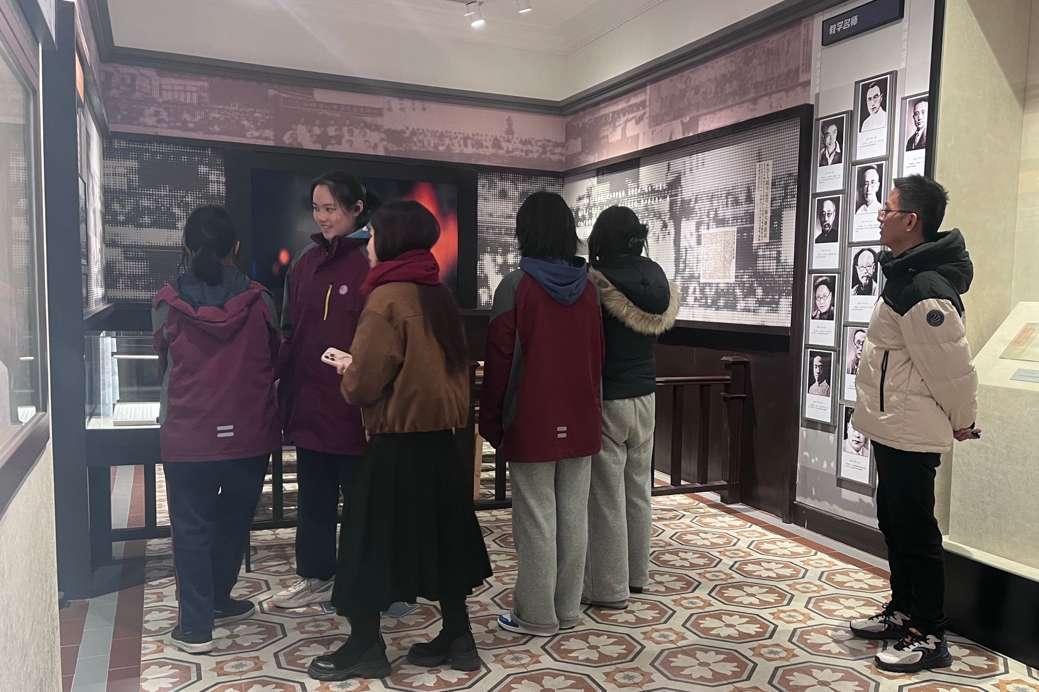 中午,同学们在益新食堂三楼体验了校园餐饮。餐后,大家跟随25级孙洁莉学姐漫步于上海大学宝山校区,也认真看了上大校史馆里的陈列展品。初冬的校园宁静而开阔,青春的脚步声回荡在林荫道间,大学生活的氛围悄然浸润心田。