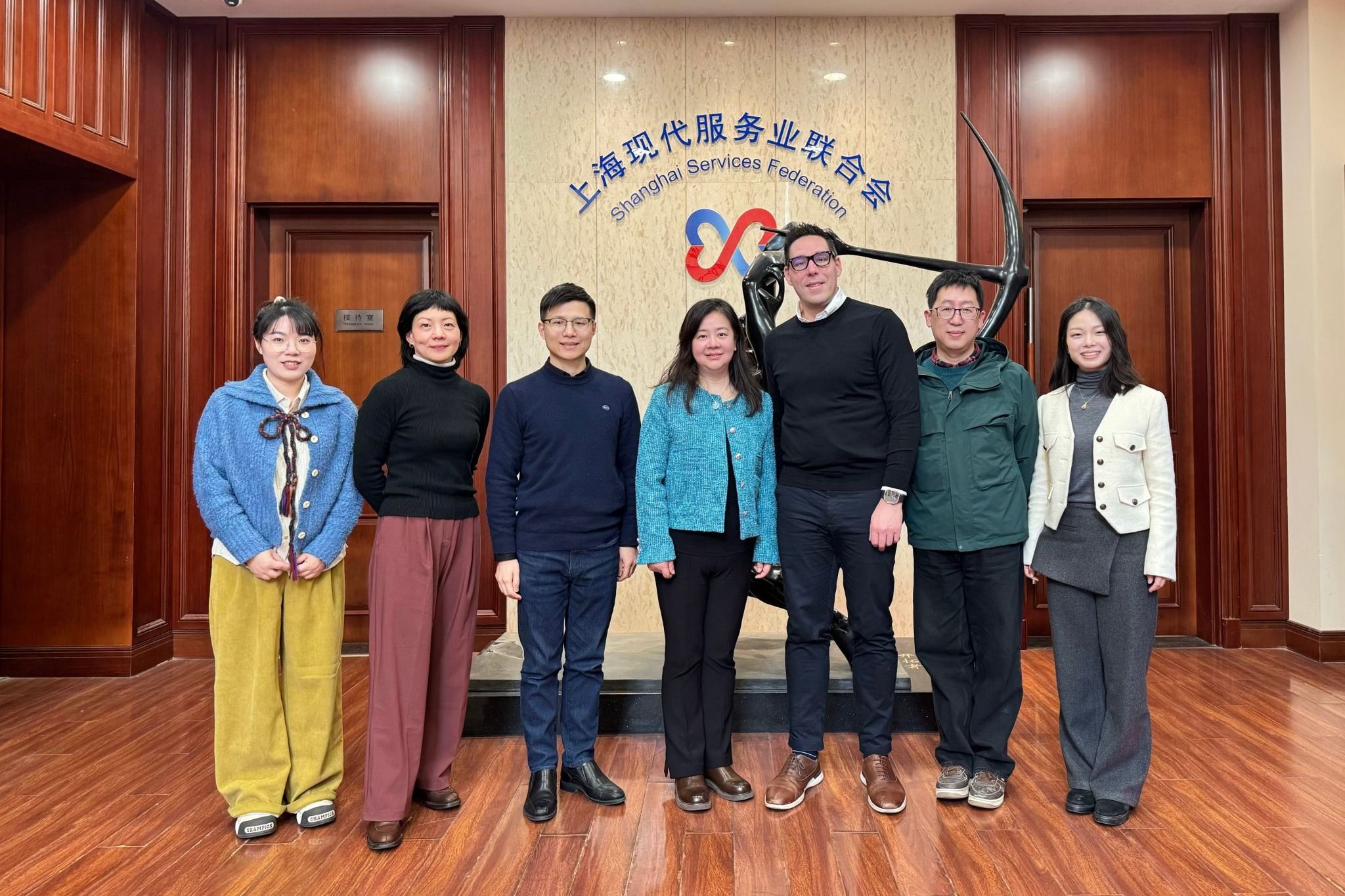 数字化转型浪潮下,教育与产业的深度融合成为驱动城市发展的核心动力。2026年1月15日,上海大学中欧工程技术学院法方院长Fabien PFAENDER、副院长何卓衡率队,携企业关系负责人程彦彦、实验室主任赵凌到访上海现代服务业联合会,与大数据中心徐云程主任及团队进行了深入的探讨,中心项目经理王芹芹,数字公共服务驿站(现代服务业)数字服务官陈悦铮,中心企业服务专员刘瑞泽参加了交流座谈。