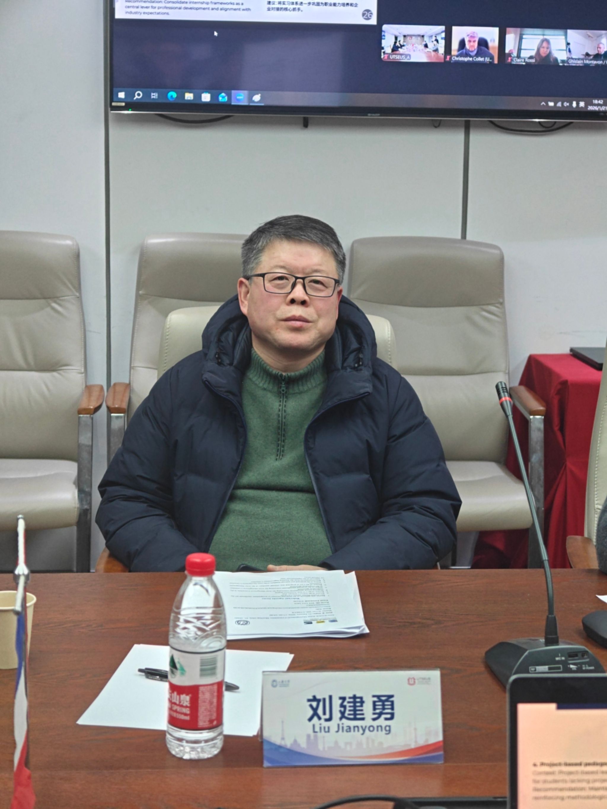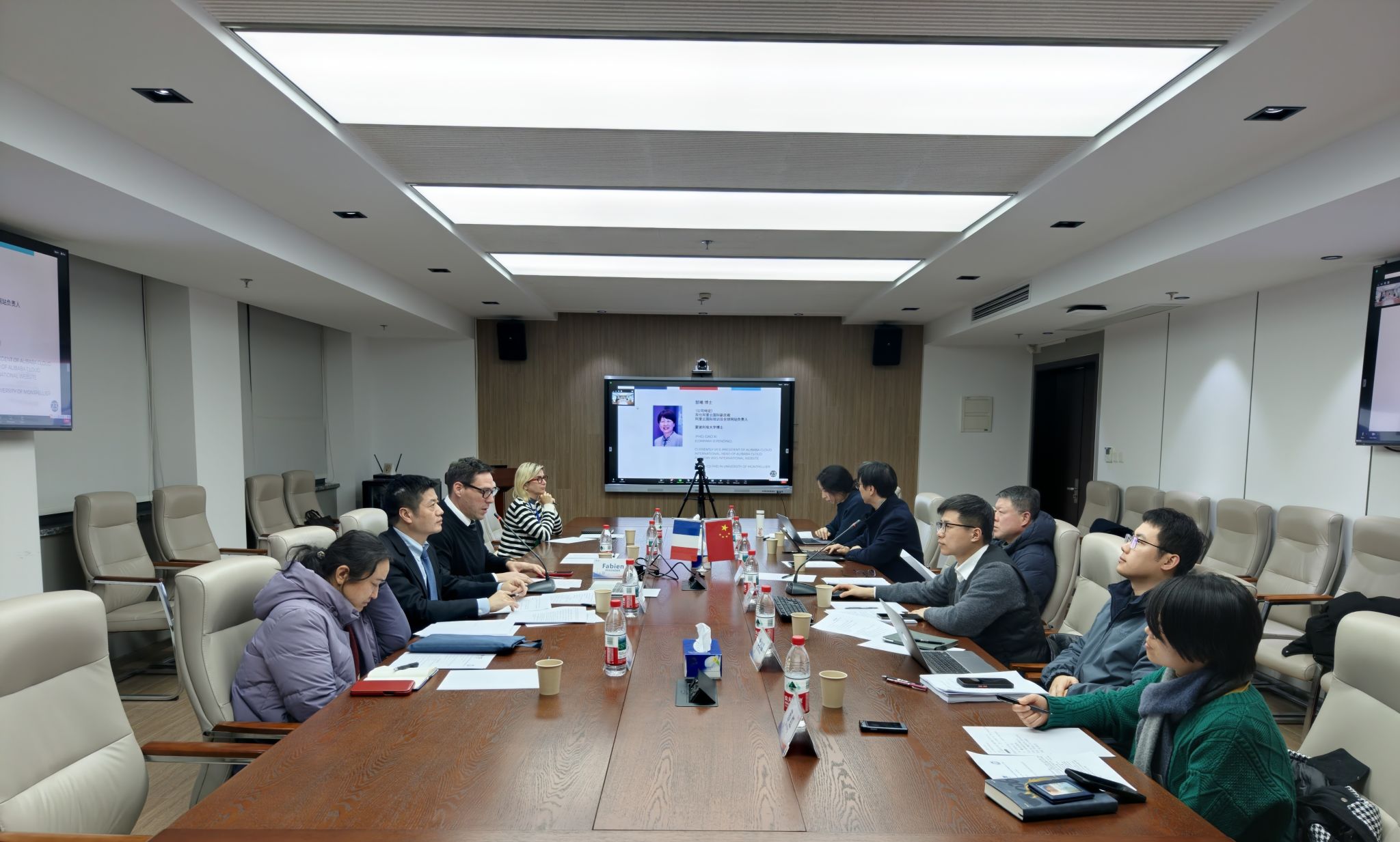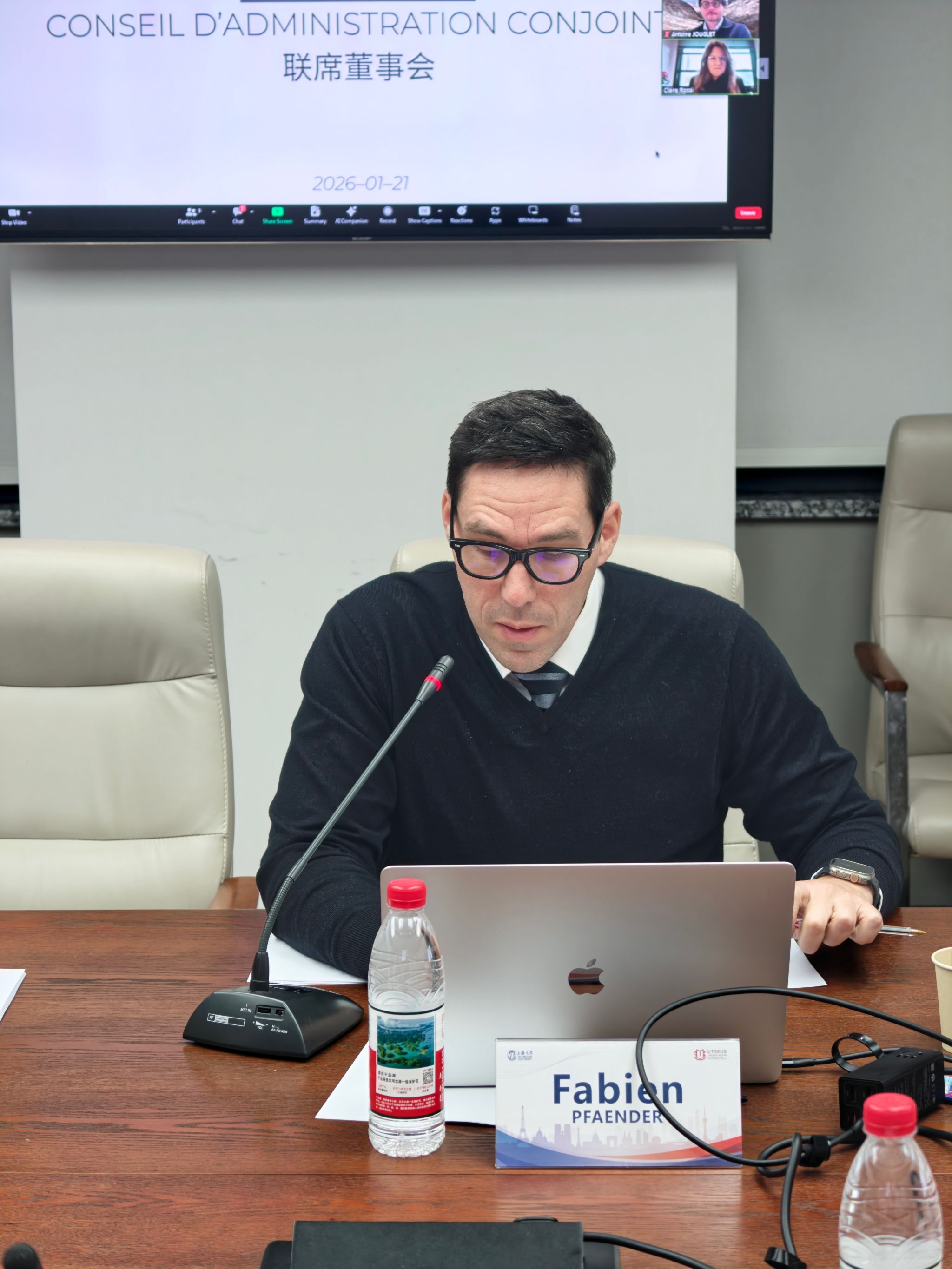 2026年1月21日晚,中欧工程技术学院2026年第一次联合管理委员会会议在宝山校区举行。上海大学副校长于雪梅,法国特鲁瓦技术大学校长Christophe COLLET,法国贡比涅技术大学校长Claire ROSSI,法国贝尔福-蒙贝利亚技术大学校长Ghislain MONTAVON,中欧工程技术学院党委书记刘建勇,执行院长王勇,法方院长Fabien PFAENDER,副院长王灵、何卓衡,学工负责人隋萍萍,法方副院长Laure MINASSIAN等线上线下齐聚,跨越山海凝聚中法共识,共商学院发展大计。