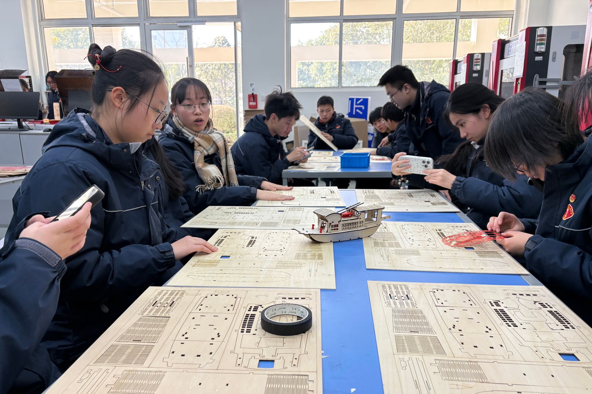 在随后的“激光加工实践与手工制作红船”实践环节中,同学们在老师的指导下动手操作激光加工设备,制作出精致的红船模型以及寓意美好的马年窗花。通过亲手实践,大家进一步加深了对工程技术的理解,也切身感受到实践创新所带来的成就感与乐趣。