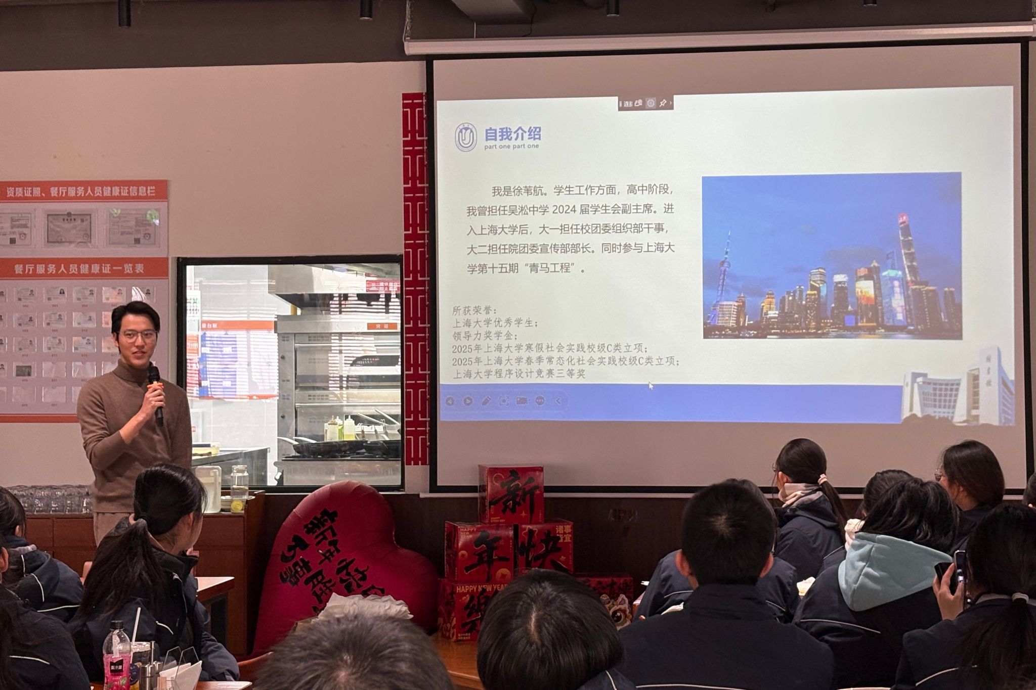 中欧学院学工负责人隋萍萍老师为同学们带来了题为“走进上大,筑梦未来”的专题讲座。讲座中,隋老师系统介绍了上海大学的发展历程、学科布局与校园文化,并重点讲解了中欧学院独具特色的办学模式和人才培养理念。通过生动而深入的讲解,同学们对大学学习生活有了更加直观清晰的认识,尤其对“如何成长为具备国际视野与解决问题能力的卓越工程师”这一话题,现场反响热烈。
